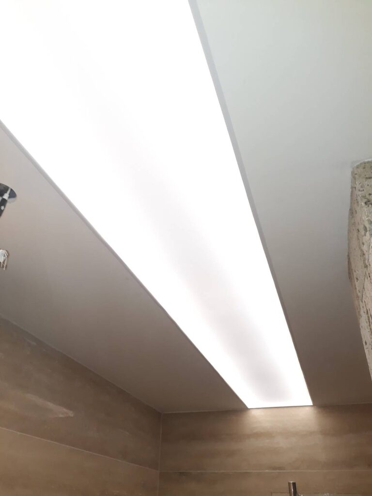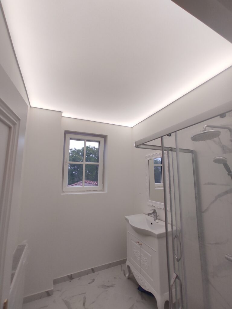 Опънати тавани – Висококачествен винил или текстил, монтиран наалуминиева или PVC конструкция. Разнообразие от цветове и десени мат,сатен, гланц, металик, перла, копринени и златни.